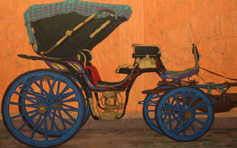 وكشف الفنان علي حسان، أن المعرض إهداء إلى سائق حنطور يُسمى رمضان أبو الروس رحل عن الحياة بعد أربعة أيام من موت حصانه، وأضاف، كان يُطربني وقع أقدام الخيل بهذه المدينة الساحرة، صوت يشق ثوب سكون الليل ليبعث الطمأنينة في القلوب، فأصحاب العربات دائما كانوا يعرفون أن تلك النغمات هي رمز الحياة لسكان المدينة، تسيل دماء الأبرياء ويرحل زوار المدينة ويحل الظلام وتبقى الطرقات صامتة بلا ضجيج، تنحنى ظهور الخيل وتضمر سيقانها وتتوقف الأقدام عن قرع الطريق، تصمت طرقعات السياط فلا السيقان أصبحت قادرة على الهرولة ولا الأيدى تقدر على حمل السياط، تشحب ألوان العجلات الزاهية وتتآكل المظلات الجلدية للعربات المتراصة تحت أشعة الشمس، فترتمي لسيقان الخيل ظلال شاحبة هزيلة، ويبقى السؤال متى تعود العجلات للدوران من جديد بعد أن أصبحت عجلات ساكنة؟، ويستمر المعرض حتى 4 مارس2018.