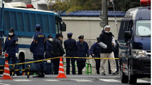 وذكرت قناة ( روسيا اليوم ) نقلا عن وكالة "كيودو" اليابانية ، أن الشرطة اعتقلت يوشينوري كاوامورا، وساتوشي كاتسورادا، المنتميان لمنظمة يمينية متطرفة، عقب قيامهما بإطلاق النار على مدخل المبنى المذكور.