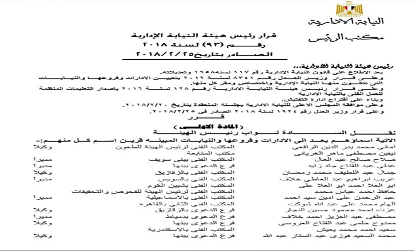 ننشر حركة تنقلات النيابة الإدارية