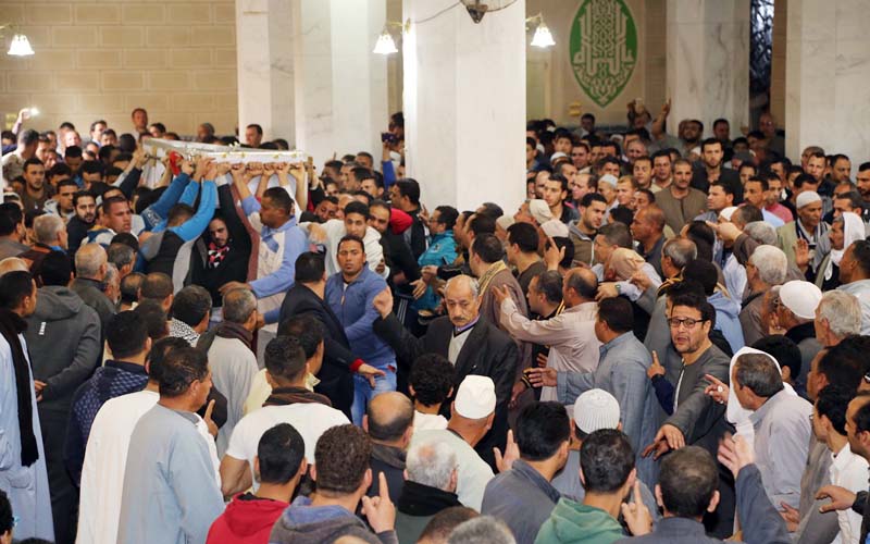 هذا فيما ردد المشيعون هتافات معادية للإرهاب منها "لا إله إلا الله والشهيد حبيب الله"، "يا شهيد نام وارتاح وإحنا نكمل الكفاح"، "لا إله إلا الله والإرهاب عدو الله"، مطالبين بسرعة ضبط الجناة وتقديمهم للعدالة والقصاص منهم.