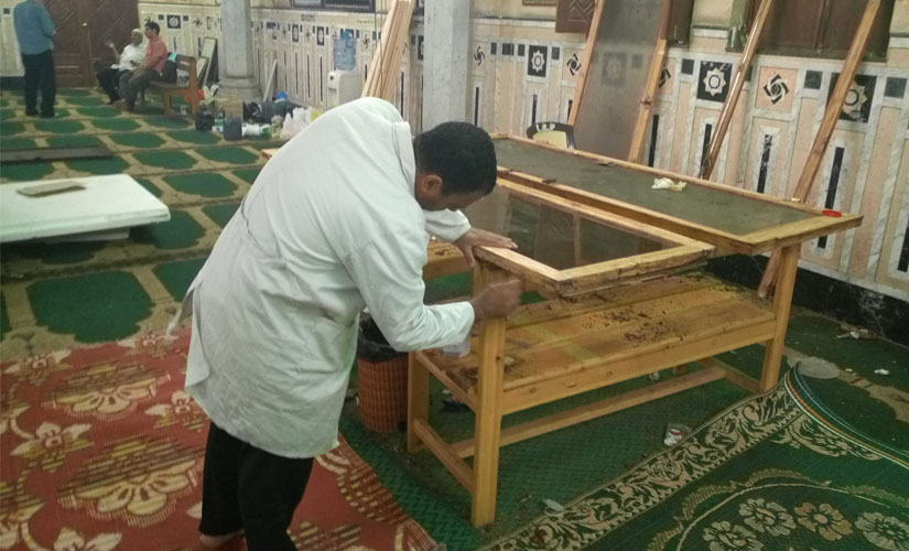 وقال د. عبد اللطيف، أن المشروع تضمن إجراء أعمال الترميم الدقيق والذي اشتمل على ترميم المقصورة النحاسية بالضريح وإعادة تنظيفها بما يتفق وقيمتها الأثرية والفنية، بالإضافة إلى أعمال الترميم الخاصة بالمقصورة الخشبية الداخلية، حيث تم إزالة الدهانات المستحدثة وفك وتركيب الأجزاء الخشبية والزجاجية والرخامية والنحاسية وترميمها وإعادتها إلى أماكنها.