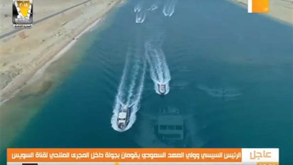 تفقد الرئيس عبد الفتاح السيسي، والأمير محمد بن سلمان، ولي العهد السعودي، مشروع قناة السويس الجديدة، وقاما بجولة بحرية داخل المجري الملاحي لقناة السويس، وذلك في جولتهما التفقدية.