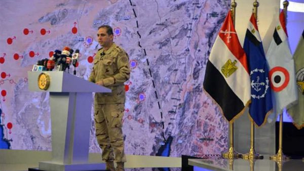 وطالب كافة وسائل الإعلام عدم تناول أي أخبار مغلوطة وغير صحيحة يتم الترويج لها من خلال الأبواق الإعلامية المناهضة للدولة وكذا التابعة للتنظيمات الإرهابية لبث رسائل سلبية تضر بسير العمليات وتحفيز العناصر الإرهابية على القتال ضد قوات الجيش والشرطة المصرية، مؤكدا حرص القوات المسلحة على إمداد وسائل الإعلام بالبيانات العسكرية بصفة شبه يومية.