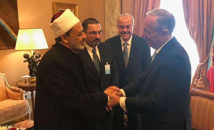 استقبل مارسيلو ريبيلو دي سوزا، رئيس جمهورية البرتغال، اليوم بمقر الرئاسة في لشبونة، الإمام الأكبر الدكتور أحمد الطيب، شيخ الأزهر الشريف رئيس مجلس حكماء المسلمين، يرافقه سفير مصر في البرتغال، والوفد المرافق لشيخ الأزهر.