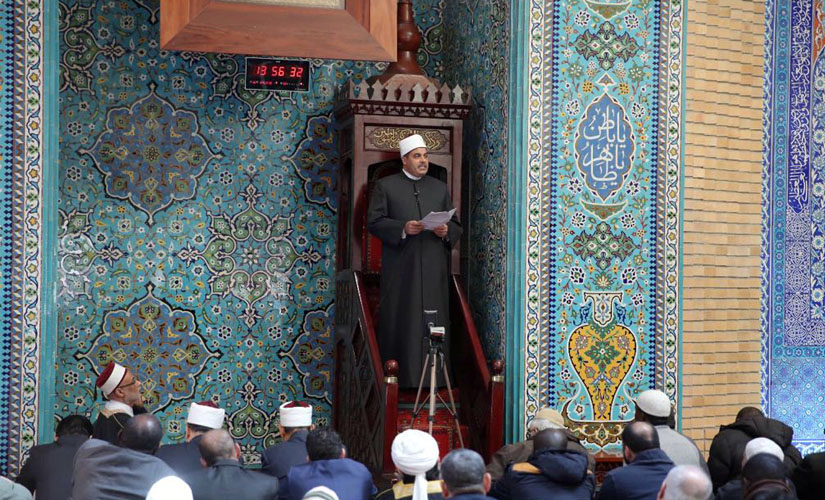 وأَلقى الدكتور محمد المحرصاوي، رئيس جامعة الأزهر، خطبة الجمعة، أكد خلالها أن عالمية الإسلام تنطلق من المبدأ القرآني الحكيم: {وَمَا أَرْسَلْنَاكَ إِلَّا رَحْمَةً لِلْعَالَمِينَ} [الأنبياء: 107] لَتنظُرُ إلى العالم كله على أنه مجتمع واحد، تتوزَّع فيه مسئوليةُ الأمن والسلام على أفراده جميعِها، مشددا على ضرورة اندماجِ المسلمين في أوطانهم الأوروبية، وانفتاحِهم على مجتمعاتهم التي يعيشون فيها.