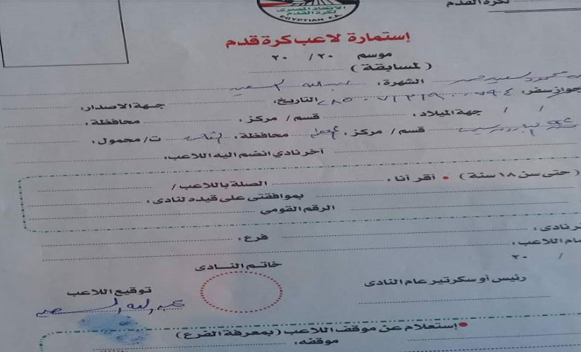 ووقع اللاعب للزمالك على النسخ الأربعة بجانب استمارة رغبة.