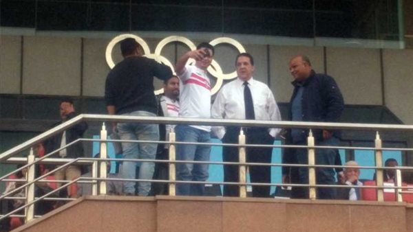 كما تواجد حازم ياسين أمين الصندوق بالمقصورة الرئيسية للاستاد السلام.
