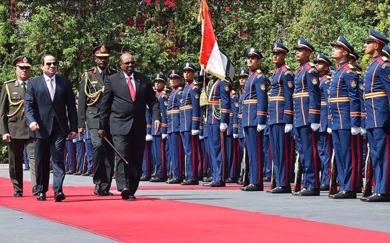 وقال السفير بسام راضي المُتحدث الرسمي باسم رئاسة الجمهورية إن الرئيس عقد جلسة مباحثات مع الرئيس عُمر البشير استهلها بالترحيب به في وطنه مصر، مؤكدًا ما يجمع بين البلدين من علاقات تاريخية وعوامل ثقافية واجتماعية مشتركة وممتدة لآلاف السنين. كما أشاد بالتطورات الإيجابية التي تشهدها العلاقات بين البلدين مؤخرًا على مختلف المستويات، مشيرًا إلى انعقاد الاجتماع الرباعي الذي ضم وزيري الخارجية ورئيسي جهاز المخابرات في البلدين بالقاهرة الشهر الماضي، والذي تم خلاله مناقشة القضايا ذات الاهتمام المشترك بين الطرفين بشفافية كاملة.