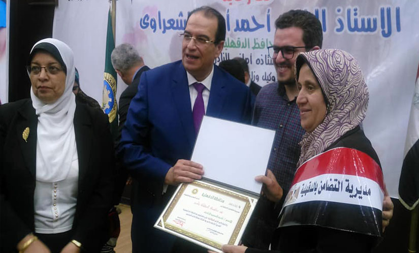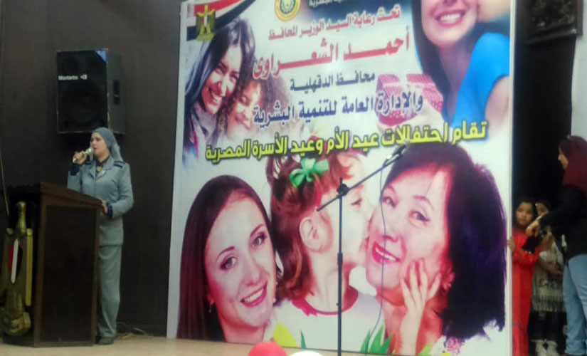 وتم تكريم صباح حمزة، 59 سنة، من عزبة واصف بميت غمر، والفائزة بلقب الأم المثالية على مستوى الجمهورية، والنائبة جواهر الشربيني، رائدة للعمل الاجتماعي، وسلوى فهيم، والدة الشهيد الرائد أحمد حسين.