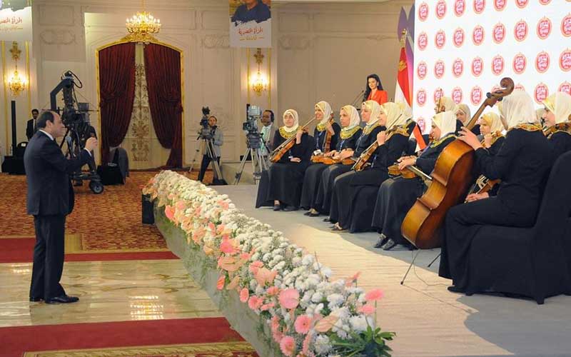 وقال السفير بسام راضى المتحدث الرسمى باسم رئاسة الجمهورية إن الرئيس استمع في بداية فقرات الحفل إلى فقرة فنية من أوركسترا النور والأمل، حيث حرص على توجيه تحية تقدير لعضوات الأوركسترا بعد انتهاء العرض، مؤكدًا أنهن بمثابة دفعة هائلة من الرضا والبهجة والسعادة، ورسالة للجميع بأن مصر تستطيع تحقيق الإنجازات.