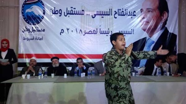 طفل يغني بـ"قالوا إيه" بمؤتمر دعم "السيسي" بأسيوط