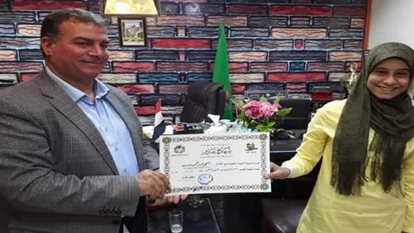 تكريم طالبة في افتتاح مدرسة دفنو الإعدادية بالفيوم