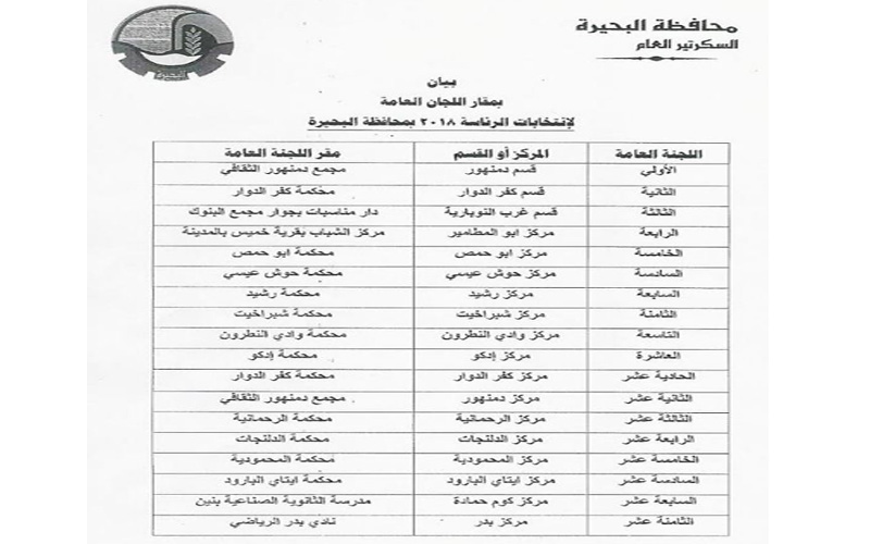 وقال رئيس اللجنة العامة للانتخابات، إن اللجنة وغرفة العمليات تضم في عضويتها المستشارين حسام أبو زهرة مساعد رئيس المحكمة وعلى العشري وأحمد فوزي المحامي العام لنيابات وسط دمنهور وحمادة عطية نائب رئيس مجلس الدولة وعبد الله عبد المنصف وعادل مطر نائب رئيس هيئة قضايا الدولة.
