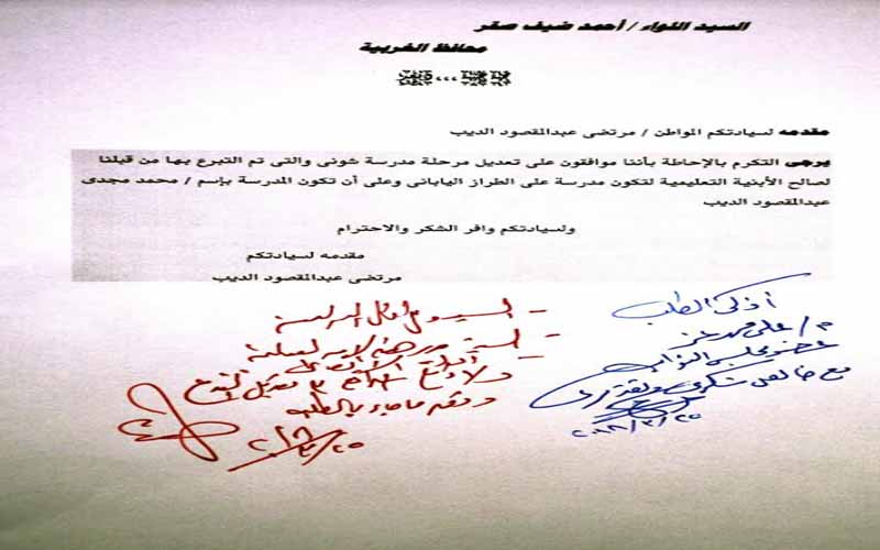 استقبل اللواء أحمد ضيف صقر محافظ الغربية المهندس مرتضى عبد المقصود الديب بمكتبه بديوان عام المحافظة والذي قدم طلب تعديل تبرع لقطعة أرض مساحتها فدان بقرية شوني مركز طنطا تبلغ قيمتها 12 مليون جنيه لإقامة مدرسة ياباني عليها على أن يطلق عليها اسم محمد مجدي عبد المقصود الديب.