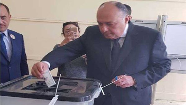 أدلى سامح شكري وزير الخارجية، بصوته في الانتخابات الرئاسية، بمدرسة «سيزا نبراوي» في القاهرة الجديدة.