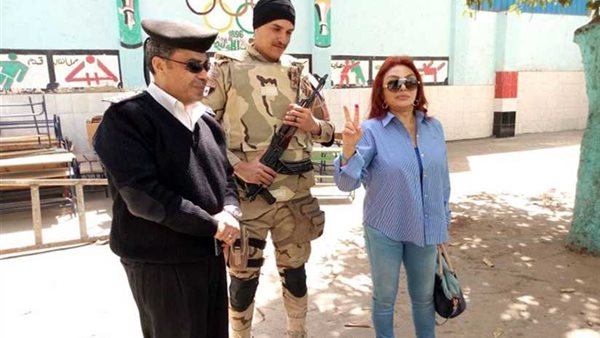 وقامت الفنانة الكبيرة بالتقاط عدد من الصور التذكارية داخل اللجنة أثناء التصوير وغمس إصبعها في الحبر الفسفوري، ومجموعة أخرى من الصور مع رجال الامن من قوات الجيش والشرطة القائمة على تأمين اللجنة.