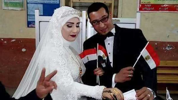 عروسان يدليان يشاركان في الانتخابات بشبرا الخيمة