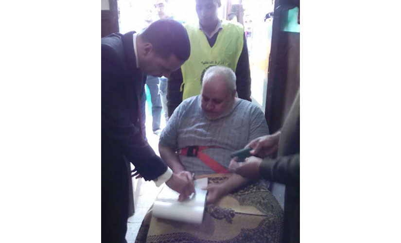لم تمنعه ظروفه المرضية من الإدلاء بصوته.. قام باستدعاء سيارة الإسعاف لنقله إلى لجنته في طنطا.. ونزل المستشار رئيس اللجنة لاستقباله والترحيب به وتسليمه بطاقة الاقتراع.