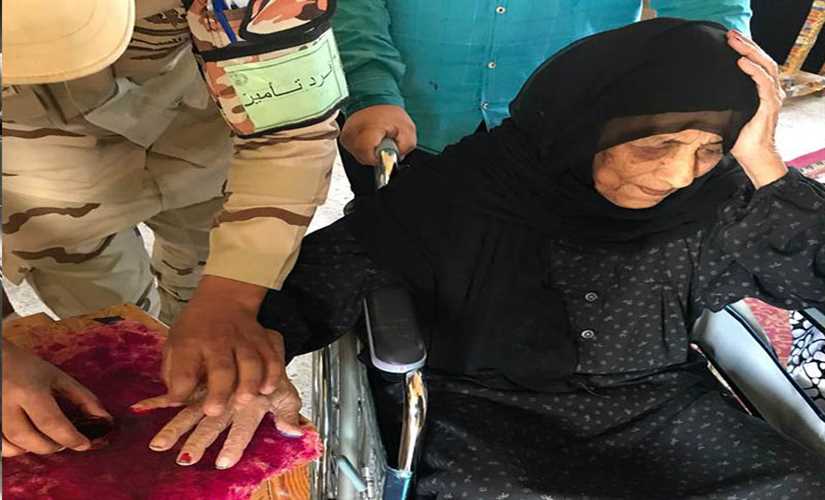 ودخلت فاطمة محمد الحديدي 96 سنة، للجنتها الانتخابية محمولة على كرسي متحرك، بمساعدة أفراد الجيش المكلفين بالتأمين، وعقب إدلائها بصوتها قالت إنها حضرت للتصويت للرئيس السيسي، الذي جاءها في المنام مرتين، متمنية مقابلته والتحدث معه.