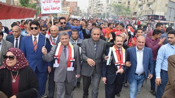 مسيرة حاشدة لجامعة بنها لحشد المصوتين (صور)