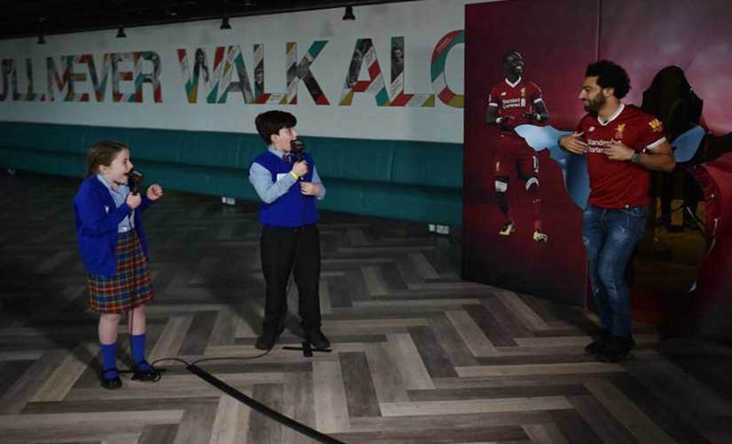 "صلاح" يفاجئ 20 طفلًا بمسابقة التعليق الرياضي في مدرسة بـ"ليفربول"