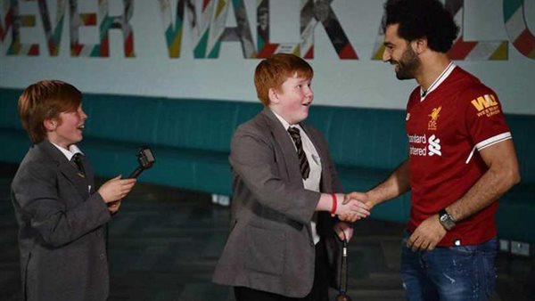 فاجأ الدولي المصري 20 طفلًا في مدرسة بمدينة ليفربول، والتقى بهم على هامش مسابقة "تعليق" قيل لهم إن الفائز منهم فيها سيحظى بفرصة مقابلة صلاح.