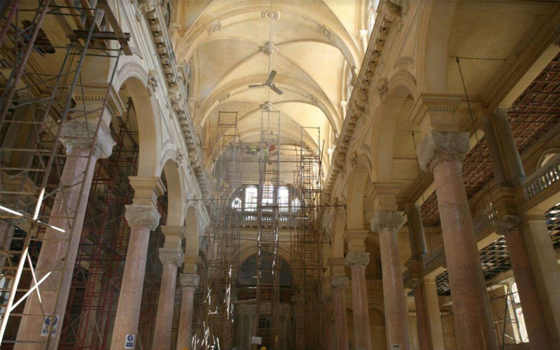 وأضاف د. عبد المنعم أن الجولة شملت أيضا تفقد أعمال المشروع بمعبد إلياهو هانبي بشارع النبي دانيال بمحطة الرمل، والمسجل أثر في عداد الآثار الإسلامية، حيث تم تنفيذ 35% من أعمال المشروع، والانتهاء من أعمال التوثيق الفوتوغرافي والمعماري للمعبد، وأخذ عينات من الأخشاب والدهانات والرخام الموجودة به لمعامل التحليل، وعمل مكاشف للأساسات والأعمدة والتيجان الرخامية والتجاليد الخشبية، وإزالة المسطحات الخضراء المتهالكة بالموقع العام طبقا لأعمال التطوير المخططة. كما جار الآن العمل على ترميم الواجهات والشبابيك والأبواب والأسقف الخشبية والأرضيات الرخامية والتجاليد الخشبية للحوائط والأرضيات.