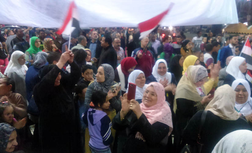 واصل أهالي محافظة الدقهلية التوافد على ميدان النصب التذكاري بمدينة المنصورة، اليوم الإثنين، للاحتفال بفوز الرئيس عبدالفتاح السيسي، بفترة رئاسية ثانية.