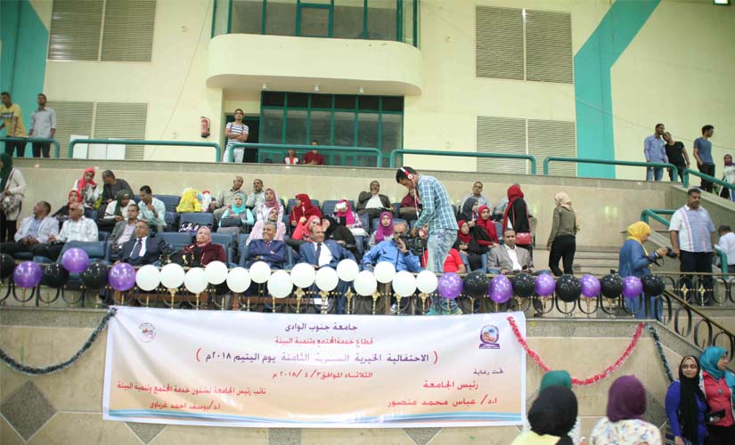 نظم قطاع خدمة المجتمع وتنمية البيئة بجامعة جنوب الوادي تحت رعاية الدكتور عباس منصور رئيس الجامعة والدكتور يوسف الغرباوي نائب رئيس الجامعة لشؤون خدمة المجتمع وتنمية البيئة الاحتفالية السنوية الثامنة ليوم اليتيم.