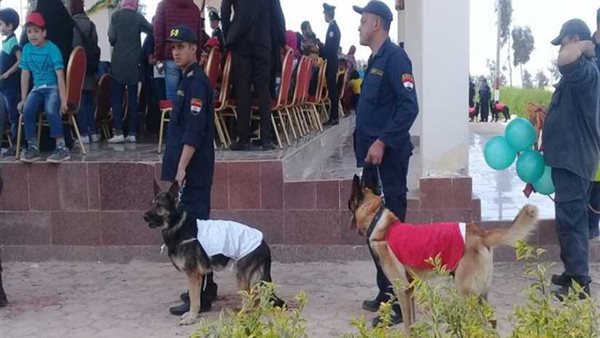 مسابقة بين الكلاب البوليسية على تحطيم البالونات في حفل يوم اليتيم
