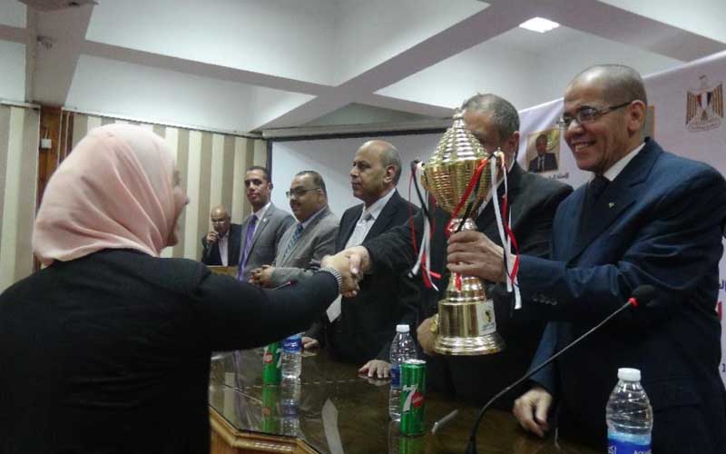 كرم الدكتور مصطفى عبد النبى نائب رئيس جامعة المنيا لشؤون التعليم والطلاب، الكليات المشاركة والطلاب الفائزين بالمراكز الأولى في ختام فعاليات المهرجان الرياضى الأول الذي اقامته جامعة المنيا بالتعاون مع وزارة الشباب والرياضة، تحت رعاية المهندس خالد عبد العزيز وزير الشباب والرياضة، والدكتور جمال الدين على أبو المجد رئيس الجامعة، والتي شاركت فيها جميع كليات الجامعة.