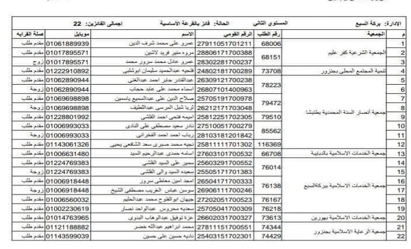 بالأسماء ننشر الفائزين بمسابقة قرعة الحج بمركزي بركة السبع والباجور.