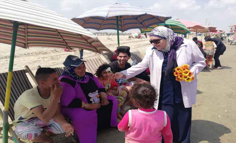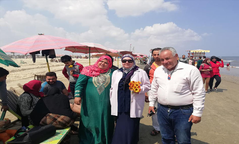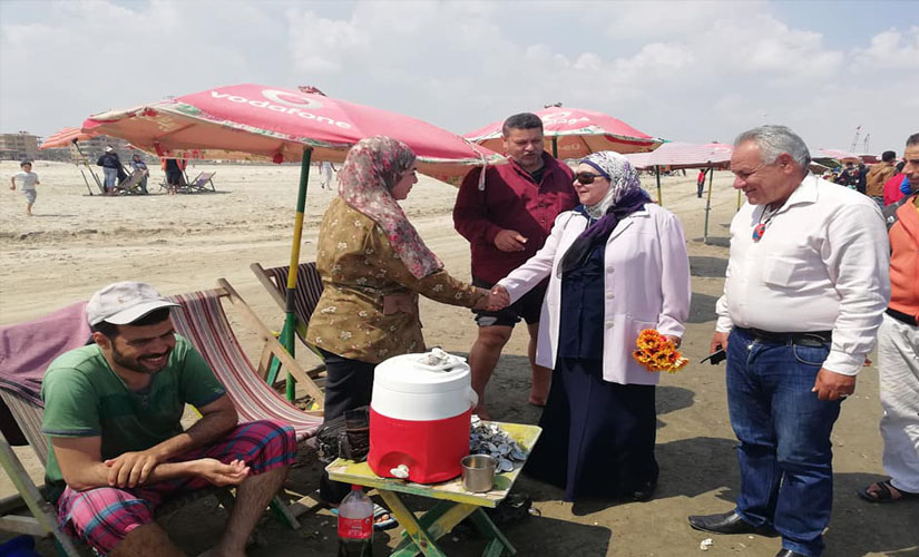 رئيس مدينة جمصة تستقبل المصطافين بالورود