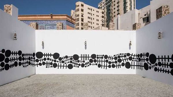 قام إبراهيم في "بيت الحرمة" في الشارقة، برسم مجموعة من الرموز على كامل جدران المبنى، دامجًا شكلًا جديدًا من اللغة مع تاريخ المكان.