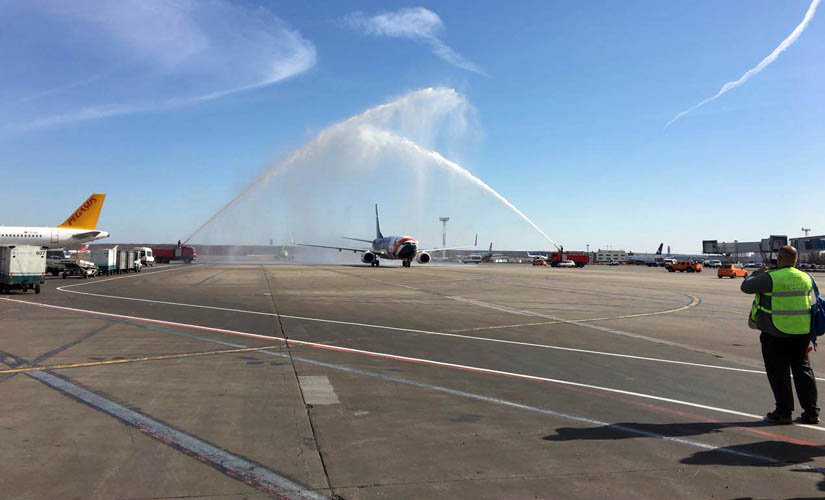 احتفت سلطات الطيران المدني الروسية ومسؤولى مطار دوموديدوفو بالعاصمة الروسية موسكو بوصول أول رحلات مصر للطيران بعد عودة رحلات الطيران المتبادلة بين الجانبين وتم استقبال الطائرة بالتقليد المعروف والمتعارف عليه في وصول أولى الرحلات وهو رش المياه على جسم الطائرة.
