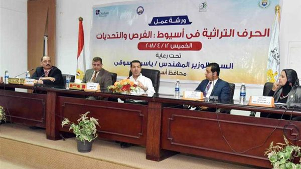 قال المهندس ياسر الدسوقي محافظ أسيوط خلال افتتاحه لورشة العمل إنه يجب البحث عن أسباب اندثار الحرف التراثية في إقليم مصر الوسطى، والذي يرجع إلى مجموعة من العوامل التي علينا إيجاد حلول واقعية لها من خلال دراسة وتخطيط وتنسيق على أرض الواقع طبقاً لمتطلبات العصر فضلاً عن توفير البيئة المناسبة والملائمة لإحياء هذه الحرف مرة أخرى والتي تساهم بشكل كبير في دفع عجلة التنمية الاقتصادية بمصر مشيرًا إلى اشتهار محافظة أسيوط بالعديد من الحرف التراثية منها حرف التلى والكليم الأسيوطي وصناعة الفخار والجريد والسلال وتشكيل الألومنيوم وصناعة القوارب ببنى عدى والنخيلة وسلام وغيرها.