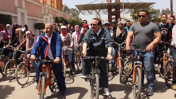 رئيس جامعة طنطا يشارك الطلاب بماراثون الدراجات