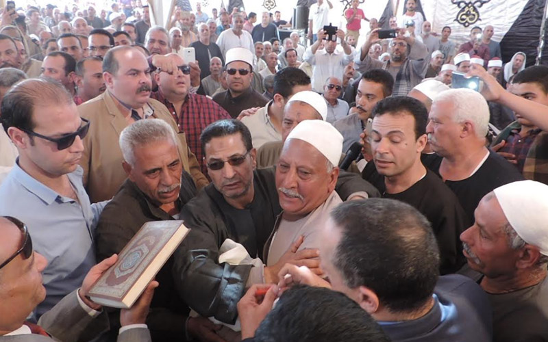 وما أسفرت عنه الجهود الأمنية والتواصل المستمر والدفع بحكماء القرية وشيوخ من الأزهر الشريف وعقلاء وكبار العائلتين بالاستعانة بأعضاء مجلس النواب إلى الاتفاق على عقد جلسة صلح بين أفراد العائلتين بالسرادق المقام بالقرية محل إقامتهم للصلح بين الطرفين.