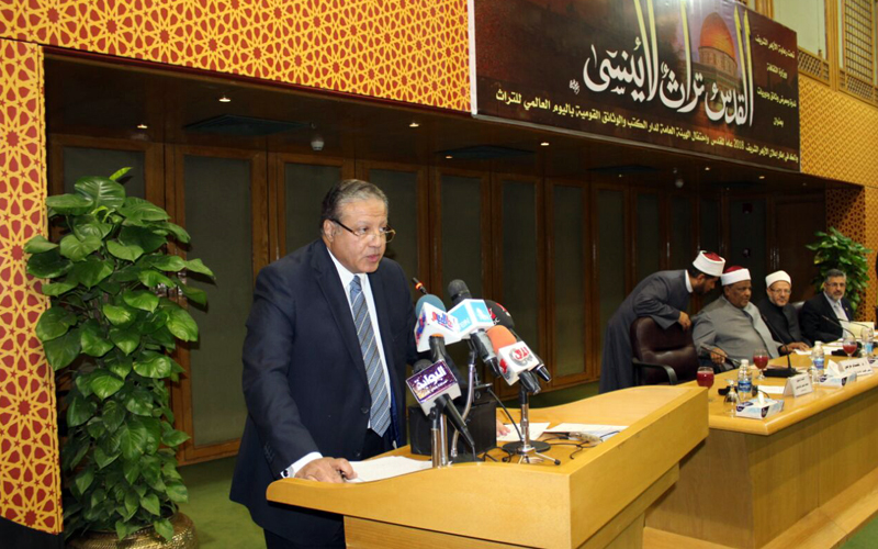 احتفلت الهيئة العامة لدار الكتب والوثائق القومية، برئاسة الدكتور هشام عزمي، باليوم العالمي للتراث، وذلك بالتعاون مع مشيخة الأزهر تحت رعاية فضيلة الدكتور أحمد الطيب، حيث أقيمت اليوم ندوة دولية بعنوان: " القدس تراث لا ينسى"، بقاعة الأزهر للمؤتمرات.