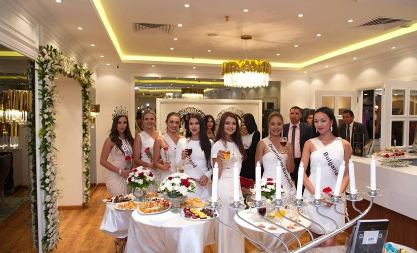 مصطفى قمر مع ملكات جمال العالم في افتتاح مول للأثاث المنزلي (صور )