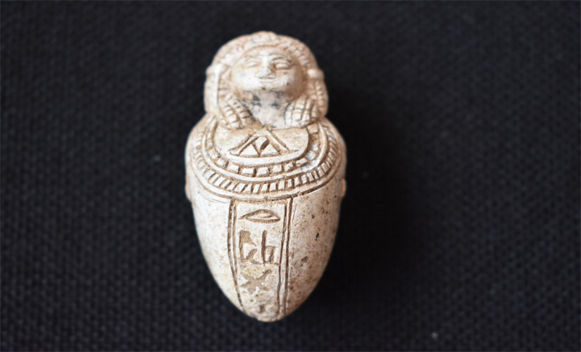 و أكد د. الدماطي أنه من القطع الهامة التي تم الكشف عنها تميمة قلب برأس آدمي لشخص يدعى ثاي من عصر الرعامسة، وكذلك الجزء السفلي من تمثال من عصر الرعامسة، مصنوع من الألباستر يرتفع 20 سم على قاعدة من الحجر البروفيري الأحمر لكاهن جالس القرفصاء على يظهر في رداء منمق جميل، ويجلس على سادة شكلت من نفس الحجر.