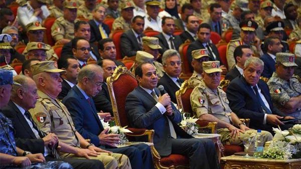 وقد حرص الرئيس على إيضاح الجهود الهائلة التي تمت لإعادة بناء القوات المسلحة بعد عام 1967، موجهاً التحية والتقدير للقوات المسلحة على الإنجاز العظيم الذي تحقق خلال هذه المرحلة. وأكد السيد الرئيس ضرورة عدم السماح بتهديد أمن واستقرار مصر والانجراف وراء ما يهدد أمنها، مشيداً في هذا السياق بالرؤية الاستراتيجية بعيدة النظر للرئيس السادات وشجاعته في اتخاذ قراري الحرب والسلام، لاسيما في ضوء الصعوبات والعقبات الكبيرة التي أحاطت بمبادرة السلام. وأشار السيد الرئيس إلى أن التحدي الأهم أمام مصر هو تحدٍ داخلي وليس خارجيًا ويتمثل في الحفاظ على تماسك الدولة المصرية ووحدة شعبها.