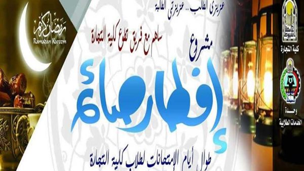أعلن الدكتور عبدالسلام نوير عميد كلية التجارة عن بدء الإعداد لإطلاق مشروع "إفطار صائم للإفطار الجماعي للطلاب المغتربين، والذي تنظمه كلية التجارة خلال فترة الامتحانات للعام الثاني على التوالي، وذلك تحت رعاية الدكتور أحمد عبده جعيص رئيس الجامعة والدكتور محمد عبداللطيف نائيه لشؤون خدمة المجتمع وتنمية البيئة، والذي يهدف إلى توفير وجبات إفطار لنحو 150 طالبا يوميا من الطلاب المغتربين المقيمين خارج المدينة الجامعية ولمدة 26 يوما في شهر رمضان الكريم.