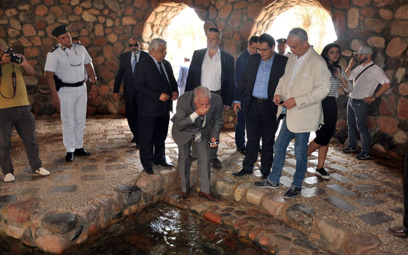 ورافق محافظ جنوب سيناء، الدكتور أيمن عبد العزيز الأمين العام للجنة العليا للسياحة العلاجية، والدكتور خالد مجاهد، المتحدث الرسمي لوزارة الصحة والسكان ممثلان عن وزير الصحة والسكان، اليوم السبت، في جولته مع الوفد المجرى لـ"حمام موسى"، بمدينة الطور كأحد معالم مصر في مجال السياحة الاستشفائية.