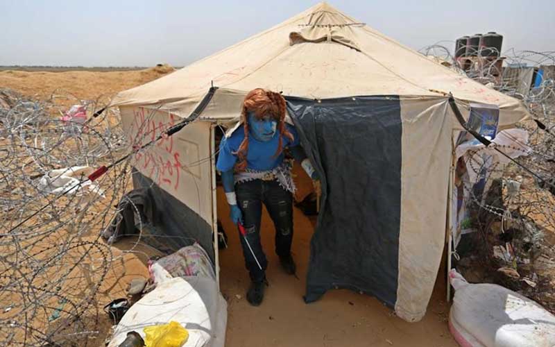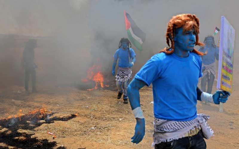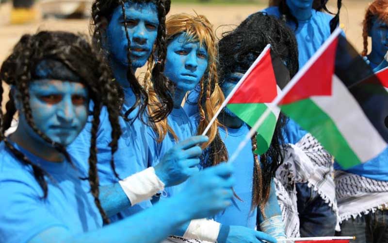 على طريقة فيلم أفاتار والشخصيات الخيالية، التي ظهرت في الفيلم الذي طُرح في عام 2009، احتج عدد من الشباب الفلسطيني على حدود قطاع غزة، بعدما قاموا بطلاء أجسادهم باللون الأزرق.