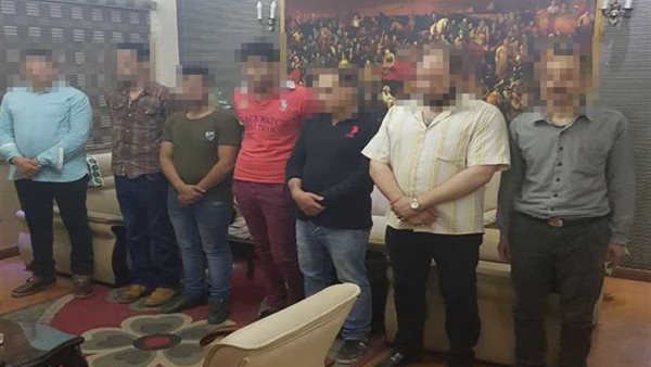 على الفور انتقل ضباط وحدة مباحث القسم وبصحبتهم القوة المرافقة وتمكنوا من ضبط كل من «محمود م» 29 سنة صاحب شركة لتجارة المفروشات، و«عامر ف» 42سنة، و«سيد ا» وشهرته «سيد الحانوتي» 35 سنة سائق، و«وليد م» 40 سنة سائق وموظف، و«خالد ح» 23 فرد سنة أمن إداري بمستشفى السيد جلال، و«محمد م» 22 سنة صاحب محل حدايد وبويات وبصحبتهم «عادل ح» 39 سنة سمسار عقارات مكبل الأيدي والأرجل ومصاب بكدمات متفرقة بأنحاء الجسم.