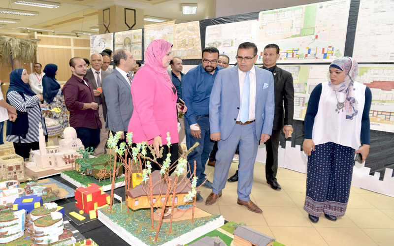 وتضمنت المشروعات المعروضة بقسم الديكور، مشاريع الاوبرا والباليه والفيلا والمحل التجاري وتصميم لوبي فندق، كما شمل المعرض عرض 150 لوحة خاصة بقسم التصوير، تنوعت بين الرسم بالزيت والرسم بالرصاص والرسم الجداري والرسم الباستير وبالزجاج المعشق والموزايك، و200 قطعة من قسم النحت سواء البارز او المجسم على الحديد والخردة والخشب والحجر، و300 لوحة خاصة بالجرافيك,