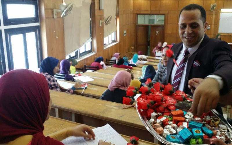 وقام رئيس جامعة دمنهور بتوزيع الورود والإعلام والشوكولاتة لرفع الروح المعنوية للطلبة وتخفيف عن الضغط النفسي الذي يلاحقهم في هذه الفترة المرهقة للطلاب.