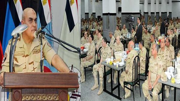 شارك الفريق أول صدقي صبحي، القائد العام للقوات المسلحة وزير الدفاع والإنتاج الحربي، أعضاء هيئة التدريس وعدد من طلبة الكلية الحربية والكلية الفنية العسكرية وكلية الطب بالقوات المسلحة والمعهد الفني للقوات المسلحة تناول وجبة الإفطار في ثالث أيام شهر رمضان المبارك، والذي يأتي في إطار لقاءاته المستمرة مع رجال القوات المسلحة والوقوف على الحالة المعنوية والقتالية للمقاتلين وتوحيد المفاهيم تجاه مختلف القضايا والموضوعات التي ترتبط بالقوات المسلحة ودورها في حماية الأمن القومي المصري على كافة الاتجاهات.