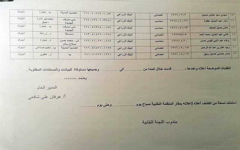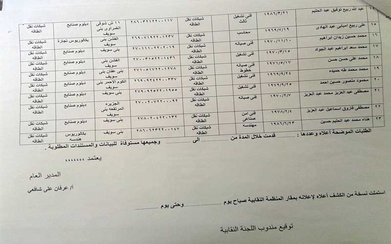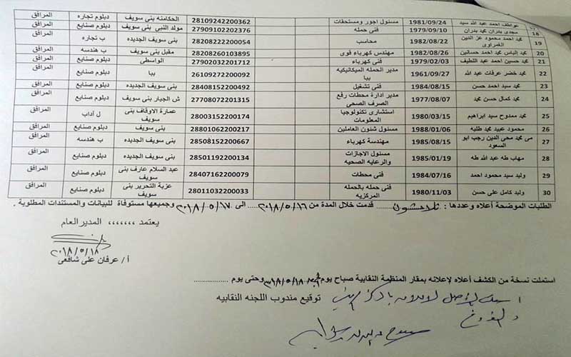 صرح عرفان الشافعي وكيل وزارة القوى العاملة في بني سويف عن عقد انتخابات اللجان النقابية بالقوى العاملة الأربعاء 23 مايو و الخميس 24 مايو.